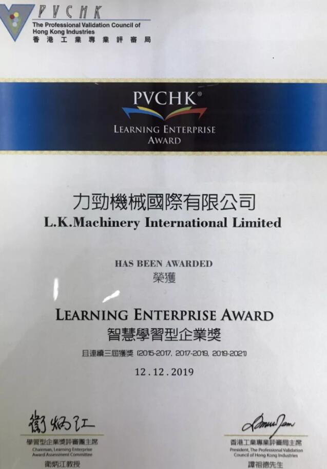 ????????經(jīng)過自我評估、評審專員初評和獨立終審委員會專家的最終客觀審定,力勁集團在“資源投入推動人才培訓(xùn)”、“系統(tǒng)化管理人才發(fā)展”、“資訊科技應(yīng)用”、“策略運用”、“企業(yè)文化”五個標準、五十項細節(jié)方面達到評審標準,榮獲“2019智慧學(xué)習(xí)型企業(yè)獎”。力勁集團CEO劉卓銘先生、董事會主席張俏英女士出席頒獎典禮。