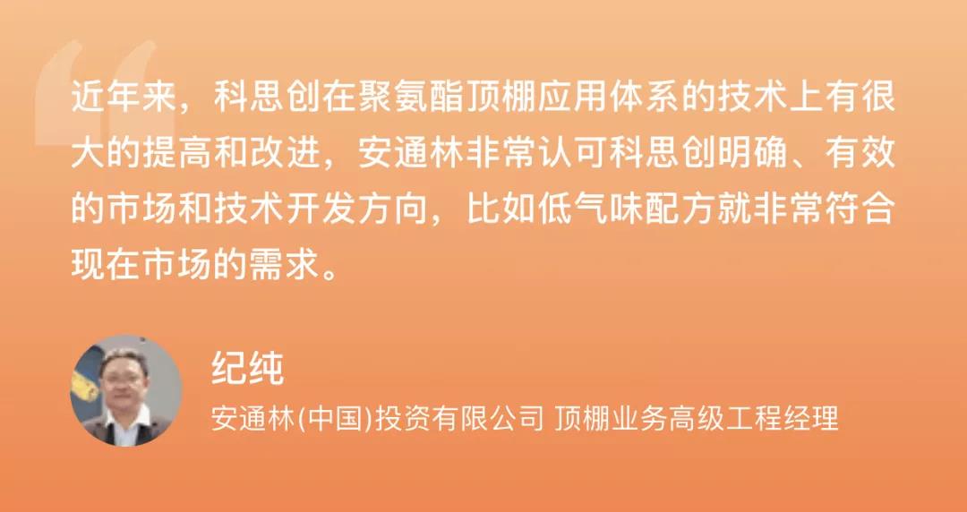 ????????聚氨酯是汽車頂棚和內飾中非常重要的原材料,為生產安全可靠的高質量車頂內飾,安通林對比了行業中多家領先原材料供應商,科思創憑借多年的研發經驗、先進的生產工藝和技術突破脫穎而出。