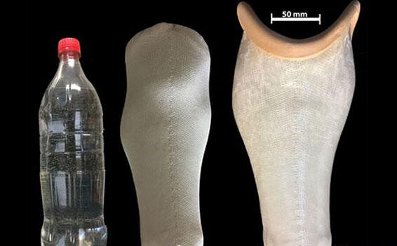 ????????據(jù)外媒報道,來自英格蘭德蒙福特大學(xué)的Kandan博士研發(fā)出了一種用廢塑料制成的假肢接受腔,他將塑料水瓶廢料磨碎,用所得材料紡成聚酯紗線,然后將其加熱并模塑制成。目前高質(zhì)量的假肢接受腔可能花費大約5000英鎊,而由塑料廢物制成的東西每只成本大約只需10英鎊。