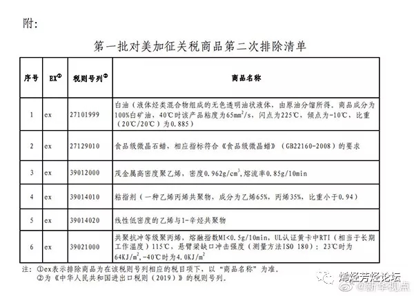 茂金屬HDPE、聚丙烯等6類化工產品不再加征進口關