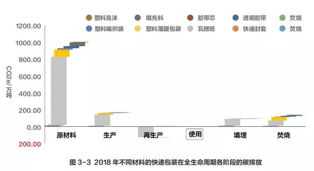 快遞包裝材料的組成特性及其生產(chǎn)工藝過(guò)程特征以及下游資源化回收和處置的全過(guò)程進(jìn)行分析,并結(jié)合生產(chǎn)過(guò)程和廢棄階段等相關(guān)的資料數(shù)據(jù),運(yùn) 用 LCA 并 遵 照 ISO14000 系 列 標(biāo) 準(zhǔn), 測(cè) 算了不同類型包裝材料和包裝方式在生命周期過(guò)程(包括原材料、包裝材料生產(chǎn)制造和回收處理階段)的碳排放因子(按單位重量作為功能單位),再結(jié)合某年快遞包裝材料消耗量估算了快遞包裝在全生命周期的年碳排放量。