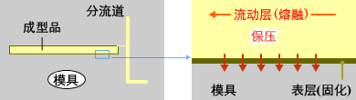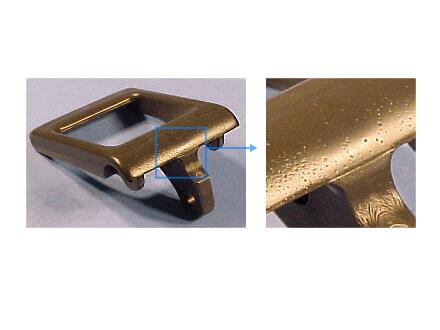 樹脂或者模具溫度比較低時(shí),注塑成型制品表面的固化速度就會(huì)加快,有時(shí)候進(jìn)行及時(shí)施加保壓,從而出現(xiàn)麻點(diǎn)外觀。
