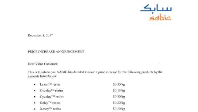 SABIC官方漲價函