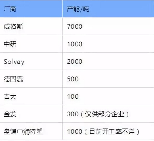 圖 PEEK生產(chǎn)廠商列表,僅供參考