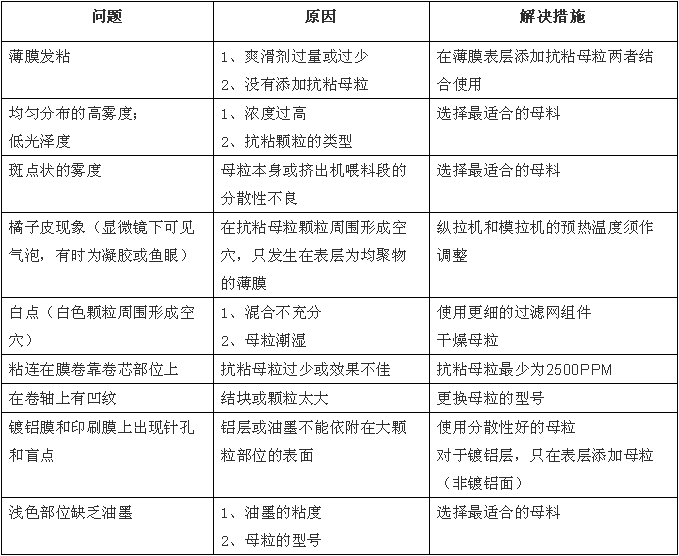 ????????薄膜生產廠家使用抗粘連母料所出現的問題分析和解決方法: